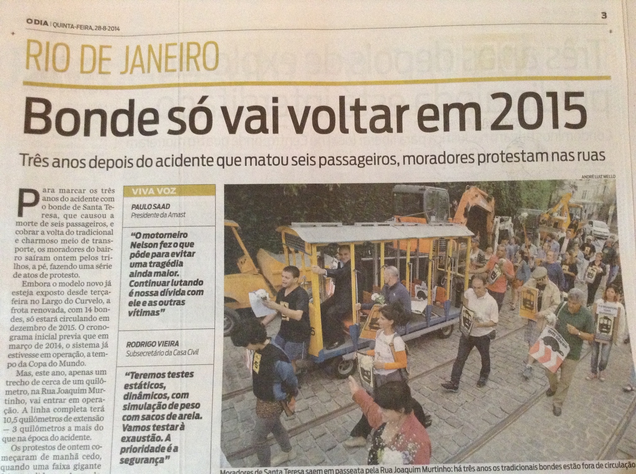 And just as I was writing this blog today I opened the newspaper and the 2nd page news was about protests of ‘Bonde’ the tram, not expecting to be opened again until 2015.. The article complained about the inconvenience of transport in the area and pollution caused by the buses running in lieu of the tram.